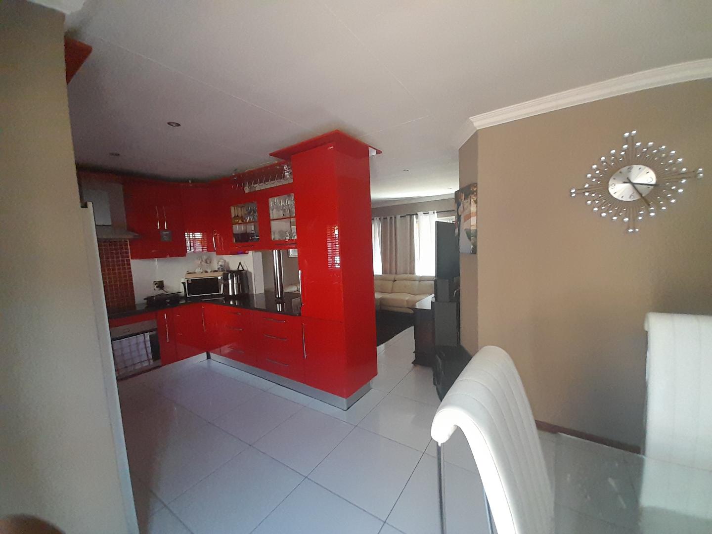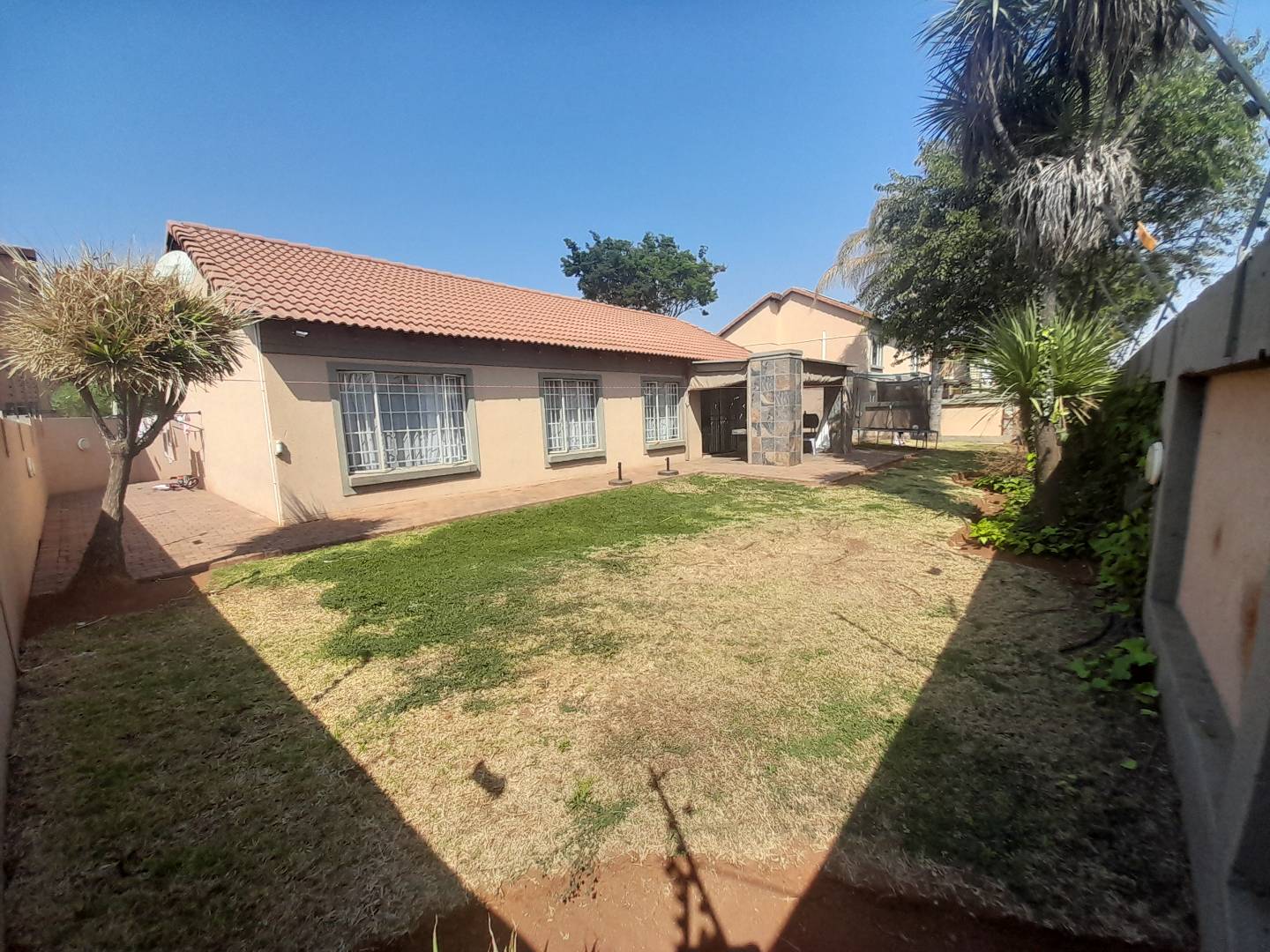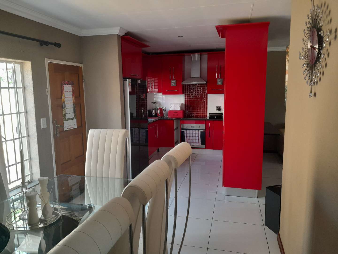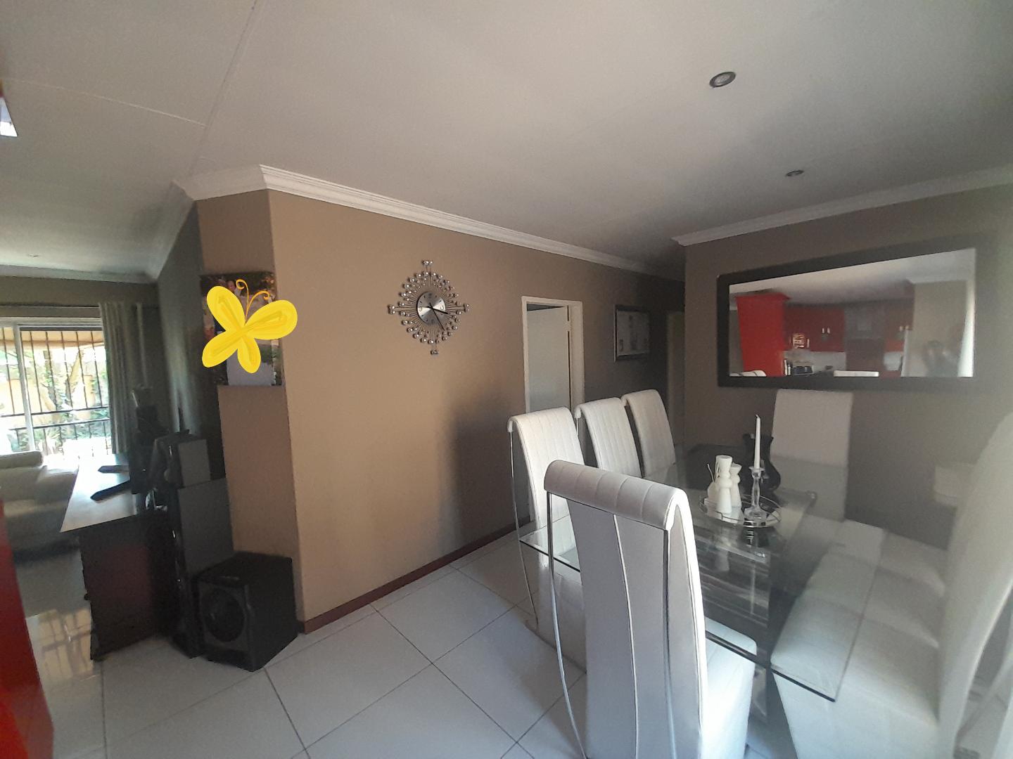 Very neat, move-in ready, spacious townhouse offers 3bedrooms with wooden floors, 2bathrooms(1 main en-suite), open-plan kitchen leading into dinning & lounge areas, covered pation with built-in braai area, private garden, double garage and extra parking space for visitors.