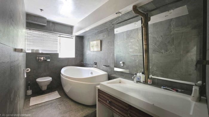 Effortless urban living with serene outdoor entertaining — private jacuzzi and covered patio opening to landscaped communal lawns near Illovo, Rosebank, Melrose Arch and the Gautrain; three beds, two baths.