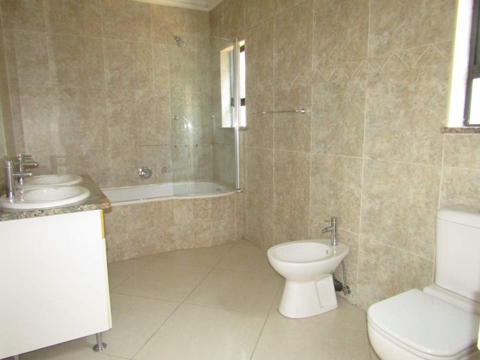 Relaxed family living steps from Ohr Somayach in Kingswood, double-storey modern home with covered patio and small garden, separate maid’s suite, five beds, four baths, double garage.