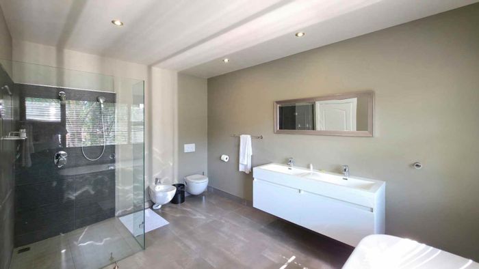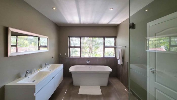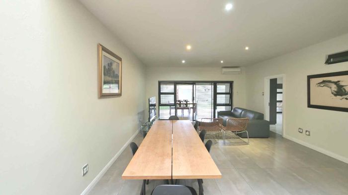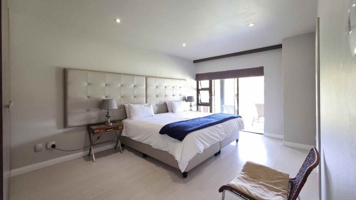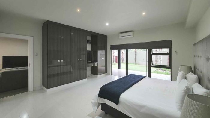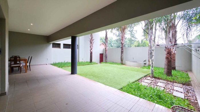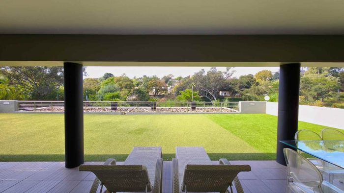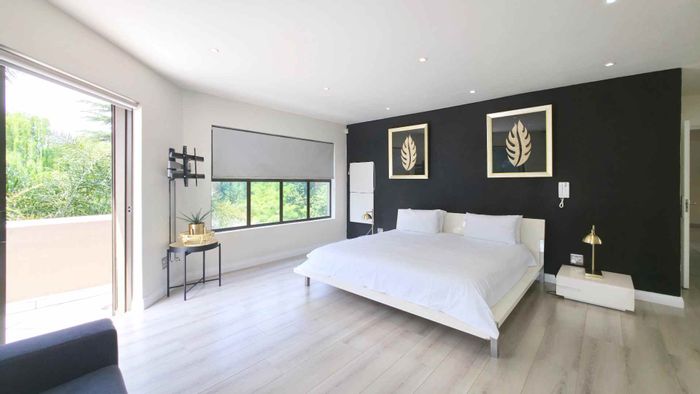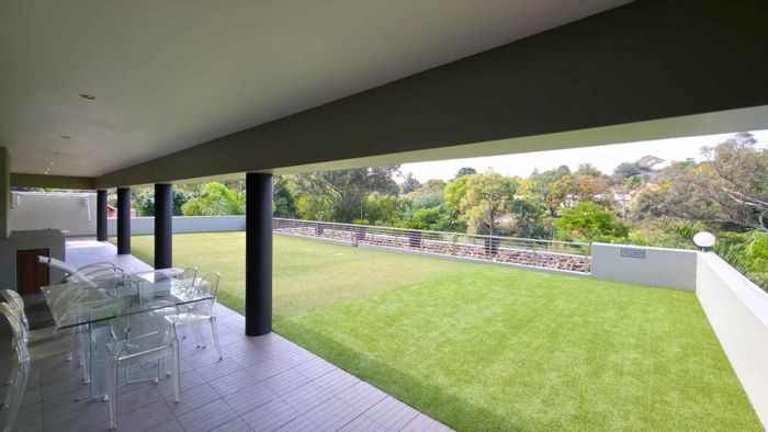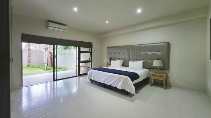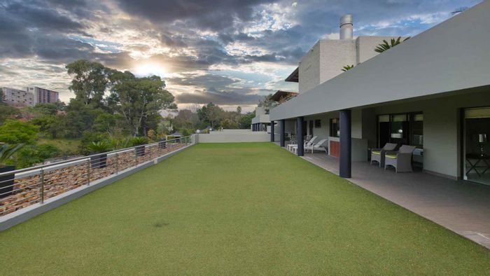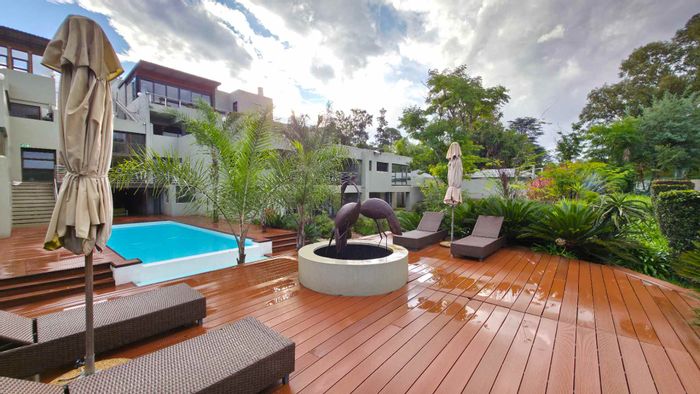Executive urban retreat near Sandton CBD and Gautrain, set within a boutique-hotel complex with private garden and stream, full-length covered patio, four en-suite bedrooms and secure double parking.