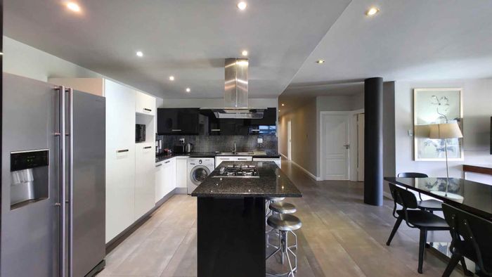 Enjoy upscale Sandton living in Sandhurst Towers with a north-facing balcony and 8-seater dining set, gourmet kitchen and pool access — two bedrooms, two bathrooms and double garage.