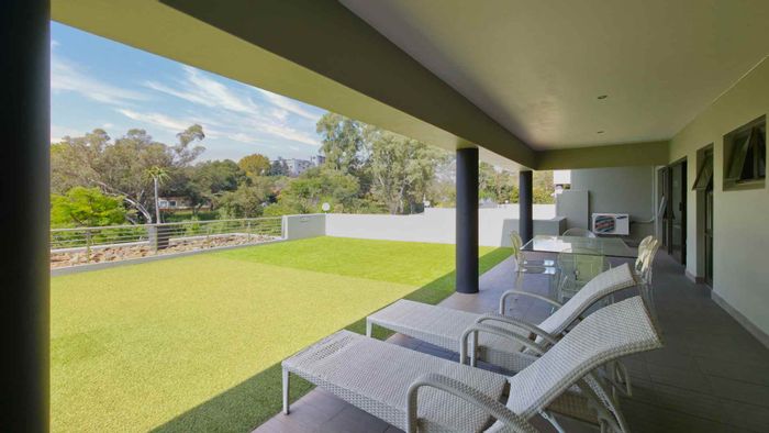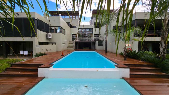 Experience executive urban living in the heart of Sandton, with a private garden, covered patio and pool plus elevated riverside views — two en-suite bedrooms and secure parking.