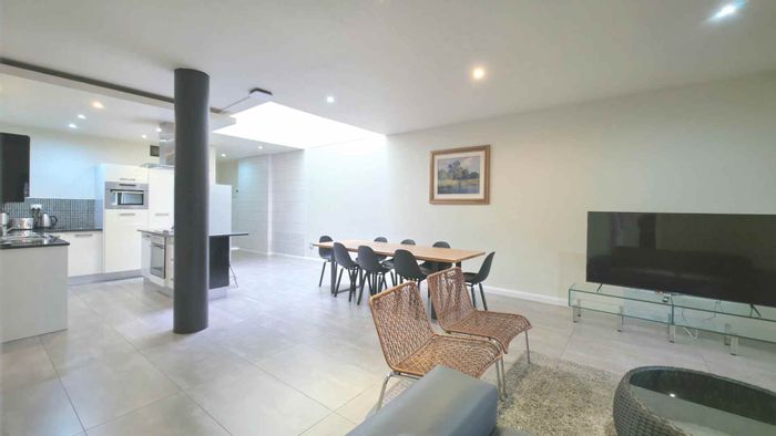 Effortless executive living steps from Investec and Sandton CBD, with an open-plan layout flowing to a covered patio and tranquil garden. Two bedrooms, 1.5 baths and covered parking.