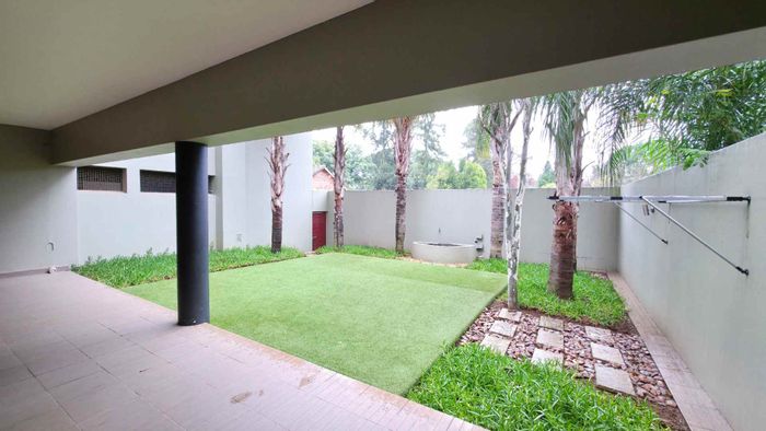 Leafy Bryanston living with a private garden and complex pool, close to shops and cafés; cat-friendly one-bedroom apartment with secure carport and 24-hour security.