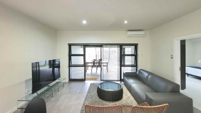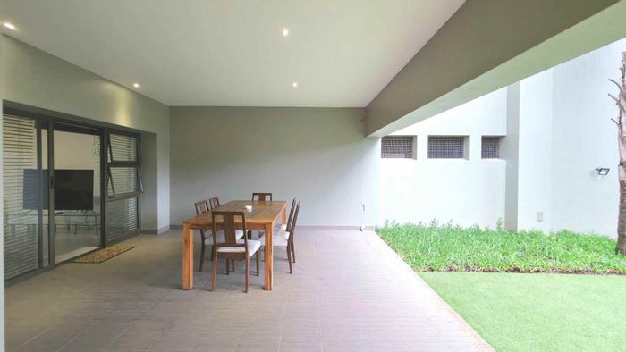 Relaxed urban living within walking distance to Benmore shops, Crawford School and Varsity College; fully furnished three-bedroom home with covered balcony, pool/gym, full backup generator, double garage.