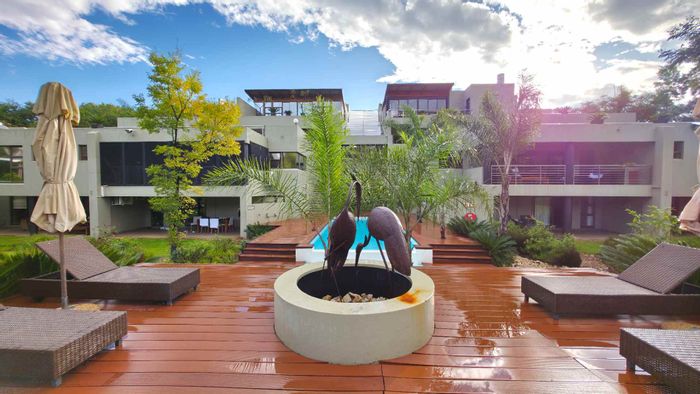 Resort-style living in Dainfern, moments from Dainfern Square and The Valley Shopping Centre; furnished loft with extra upstairs office/guest suite, balconies, two bedrooms, two bathrooms, pool.