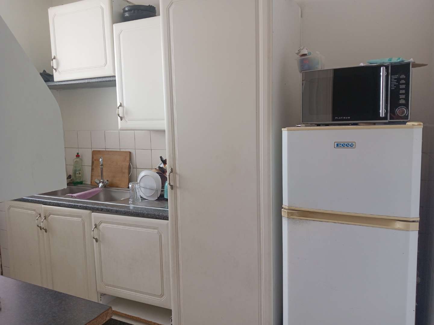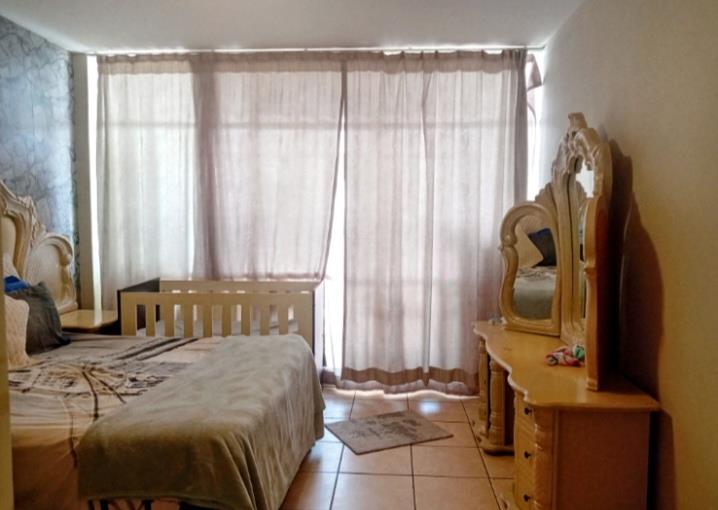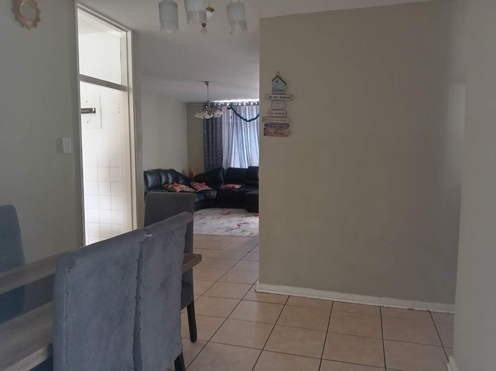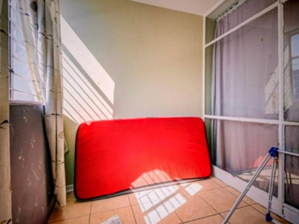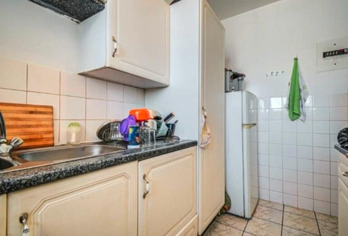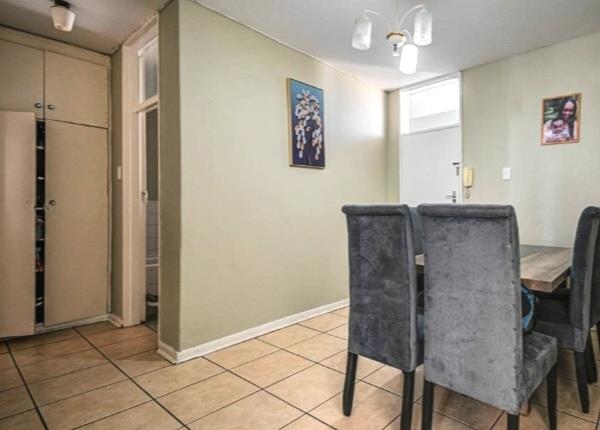 The apartment features a generously sized living and dining area that is tiled and filled with natural light, a large main bedroom with built in cupboards, and a versatile half bedroom ideal as, a study, sun room, storage room or small bedroom