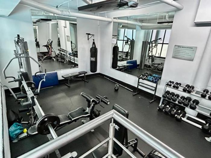 Sparkling swimming pool and gym in the Complex