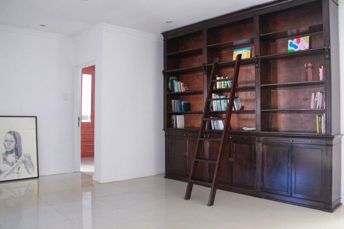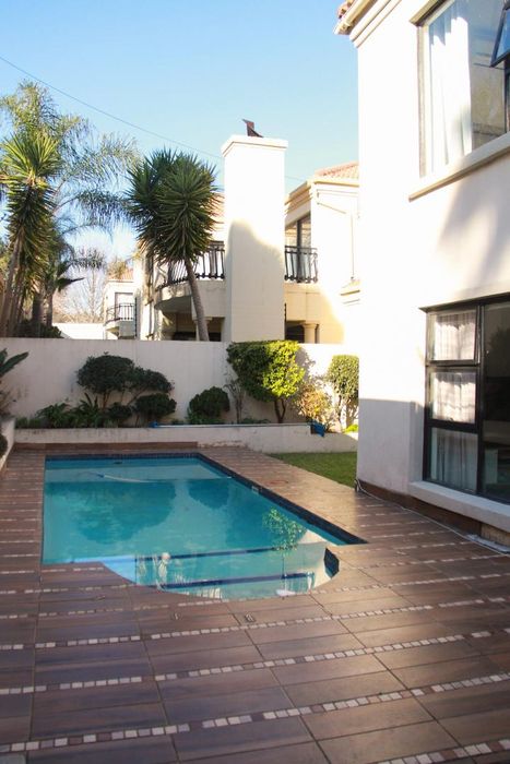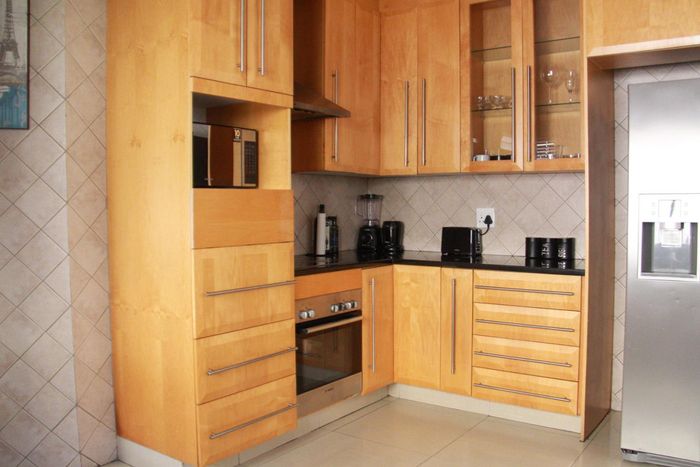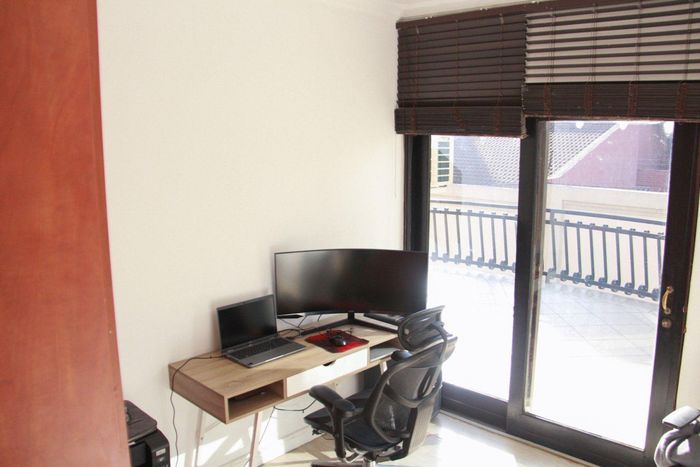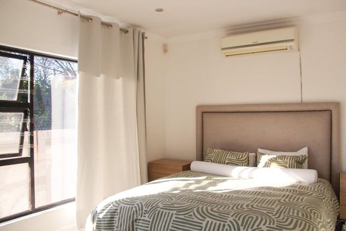Elevated urban living in Sandton — steps from Sandton CBD and Benmore Shopping. Double-storey penthouse with skyline views and private upstairs study, furnished with 3 beds and 3 parking bays.