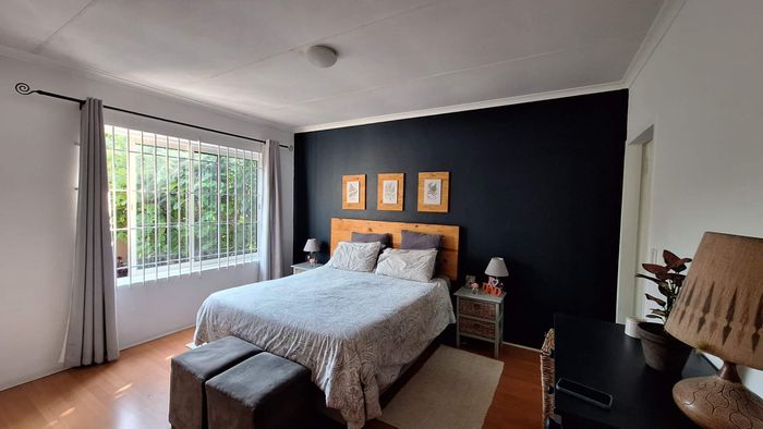 Tranquil Bryanston living on Bruton Road — sunlit open-plan spaces for effortless entertaining and a private tree-filled garden with pool; four bedrooms, three bathrooms.