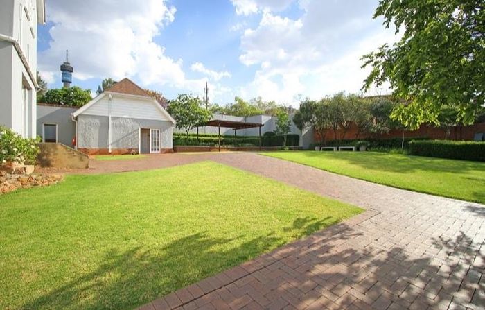 Prime professional address two kilometres from Melrose Arch — seamless freeway access and transport links, landscaped garden for client entertaining, abundant shaded parking and adaptable dual-office buildings.