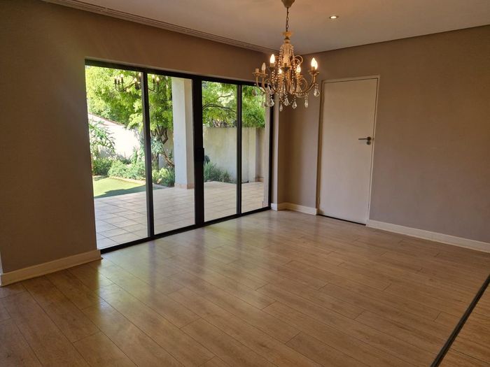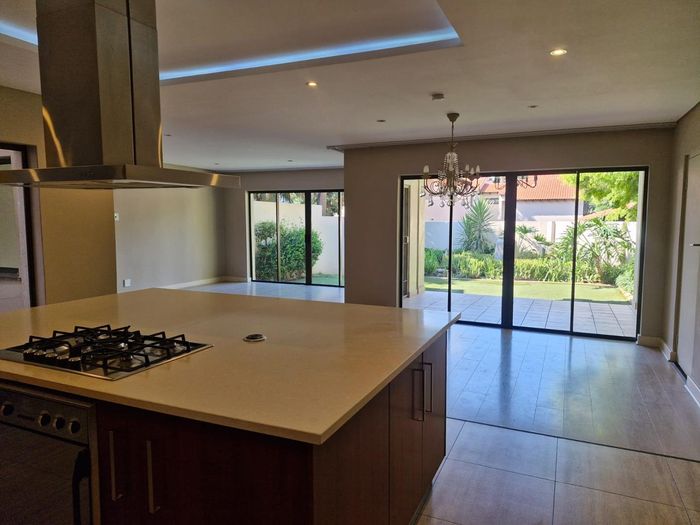 Minutes from Sandton CBD in a tranquil Sandown complex off Grayston Drive, featuring an open-plan Caesarstone kitchen, undercover patio and garden, separate-entry guest room, plus Jojo tank/inverter.