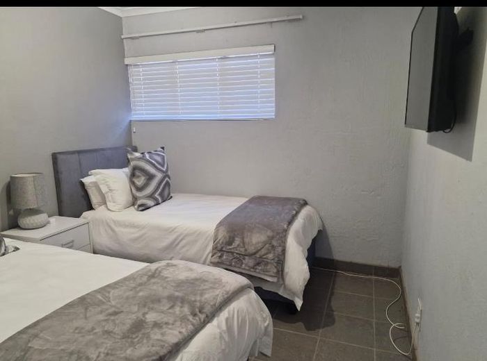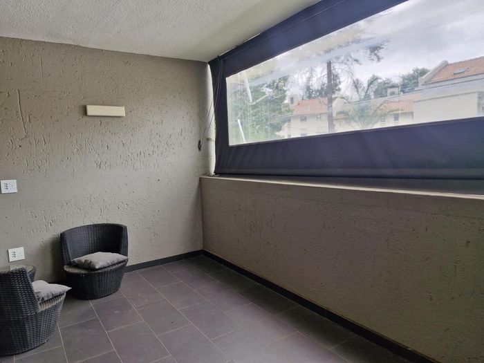 Effortless Sandton living on quiet Daisy Road, minutes from Grayston shops, gym and Gautrain. Fully furnished lock-up-and-go with open-plan kitchen and borehole water system. Two beds, two baths, garage.
