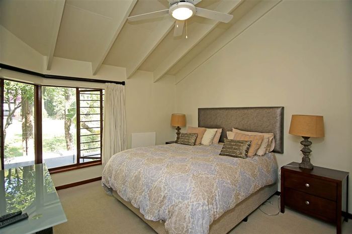 Entertainer's ambassadorial home in a secure gated estate, with covered patio, built-in braai and pool, backup electricity and water, four bedrooms, 3.5 baths and triple garage.