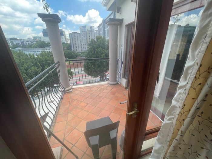 Lock-up-and-go city living in Sandown, steps from the Sandton Gautrain. Furnished studio with spacious balcony, shower bathroom and secure carport — ideal for busy executives.