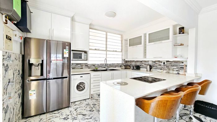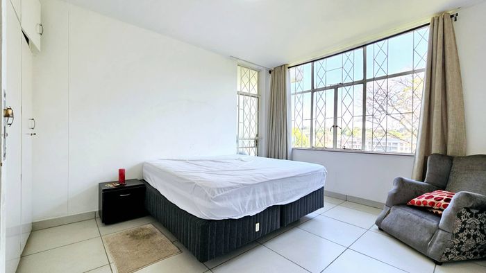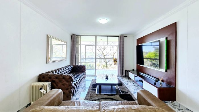 Live effortlessly near Sandton CBD in a secure boomed complex, with a covered patio offering panoramic garden and pool views. Spacious 3-bedroom, 2-bath apartment with two parking bays.