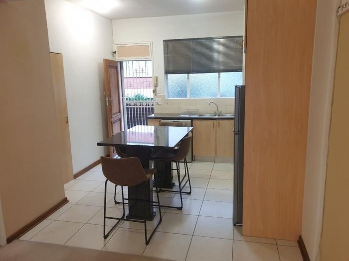Urban convenience and relaxed garden living in Rosebank—steps from the Gautrain, The Zone and Rosebank Mall. Ground-floor apartment with granite kitchen nook, scenic communal braai; one bedroom, one bath.