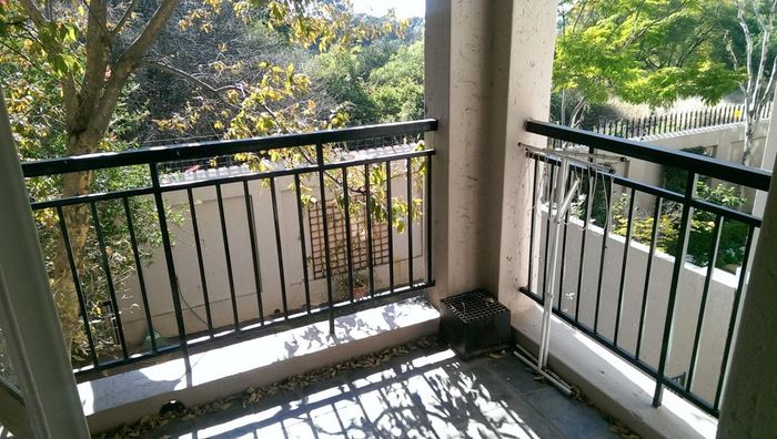 Refined urban living steps from Sandton's cafés and Benmore Shopping — furnished north-facing apartment with treetop balcony, open-plan living, two beds, two baths and secure double parking.