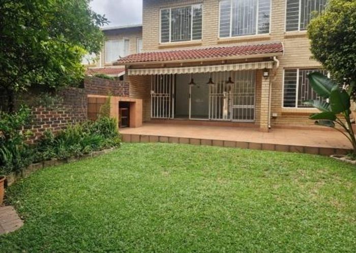 Garden apartment in Morningside, minutes from Rivonia and Bryanston, featuring marble floors, open-plan gas kitchen and dual private gardens with serving area; 1-bed ensuite, 24hr security.