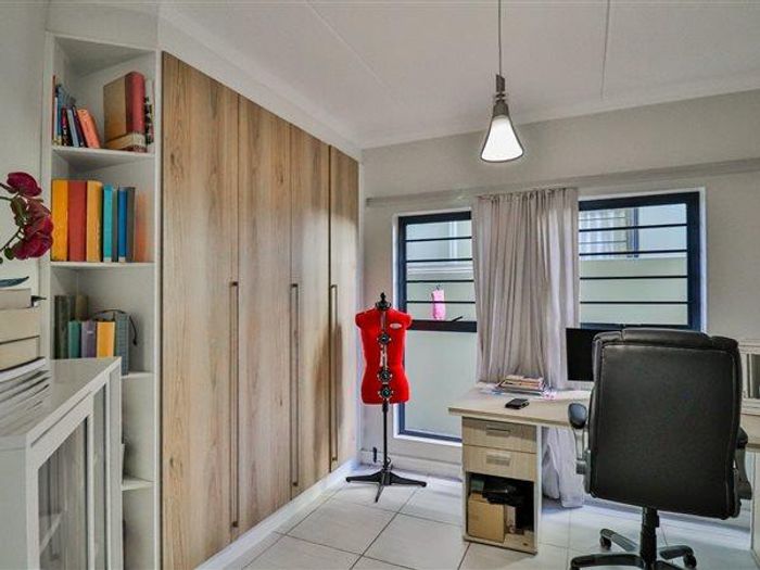 Enjoy low-maintenance living with immediate rental income R18kpm near shops, schools and gyms, with a covered patio opening to a private garden. Two bedrooms, 2.5 baths and automated single garage.