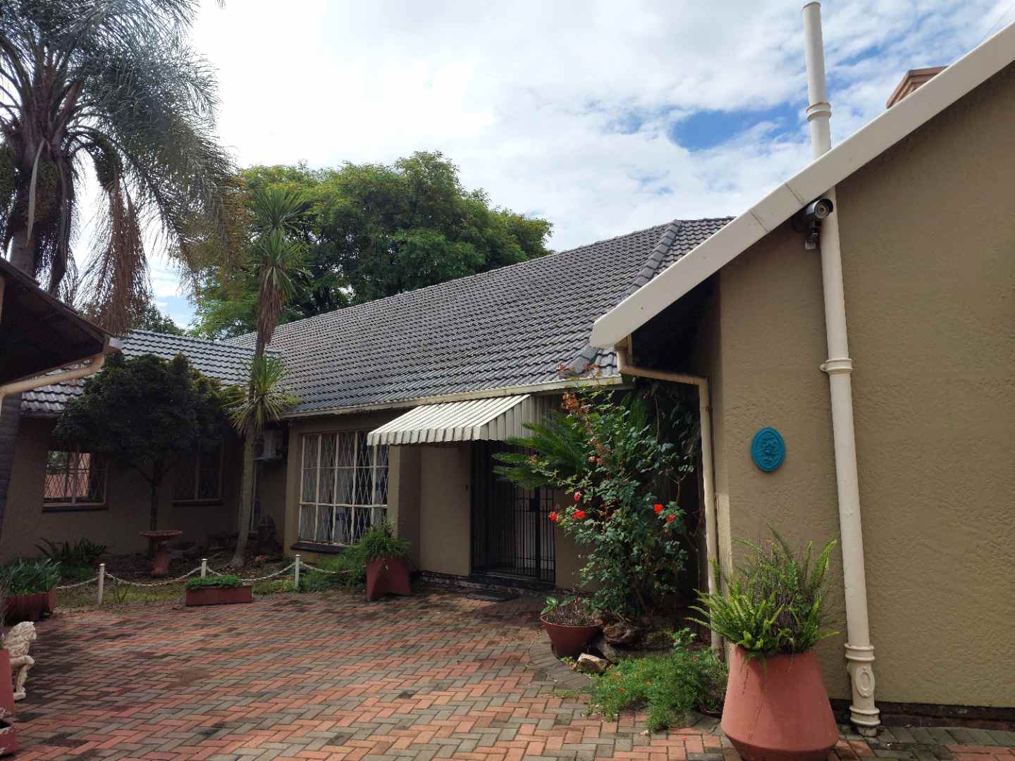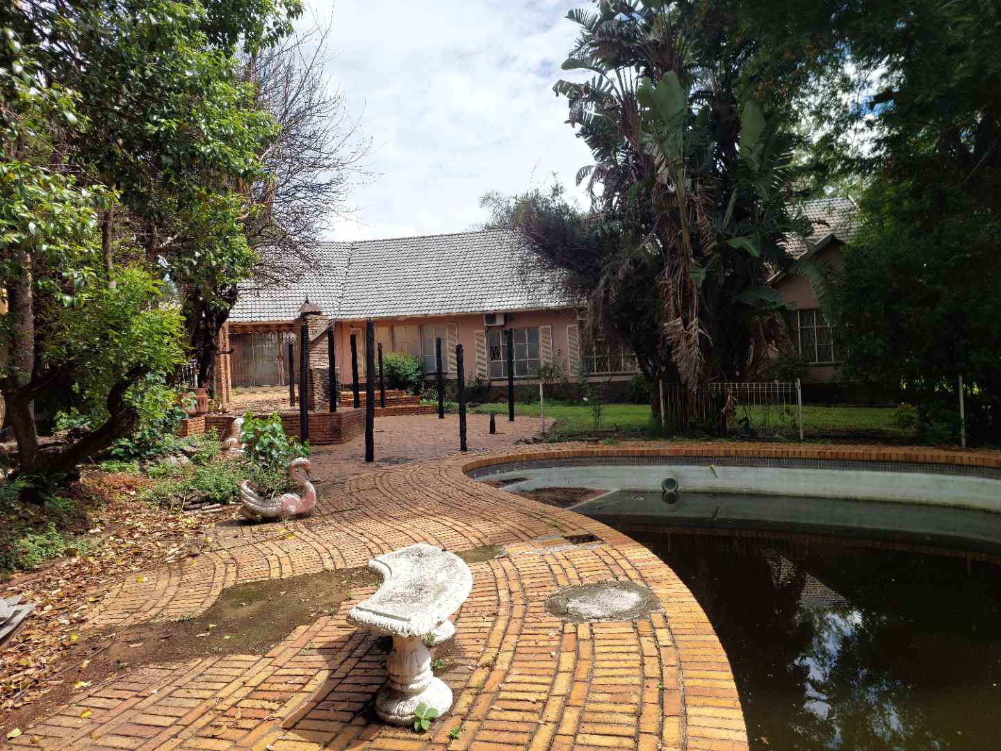 Big garden with swimming pool and tennis court.