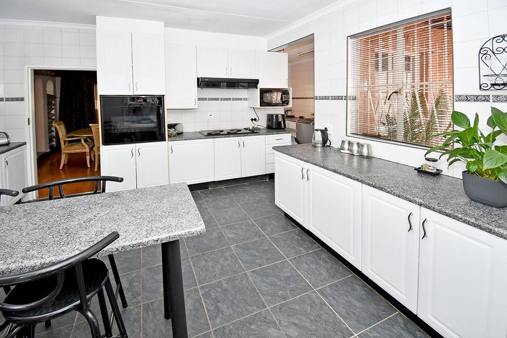 Stylish porcelain tiles run throughout the reception areas, enhancing the home’s modern elegance and easy maintenance. A large linen cupboard in the passage provides ample additional storage.