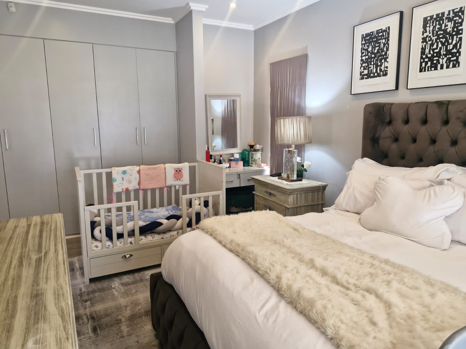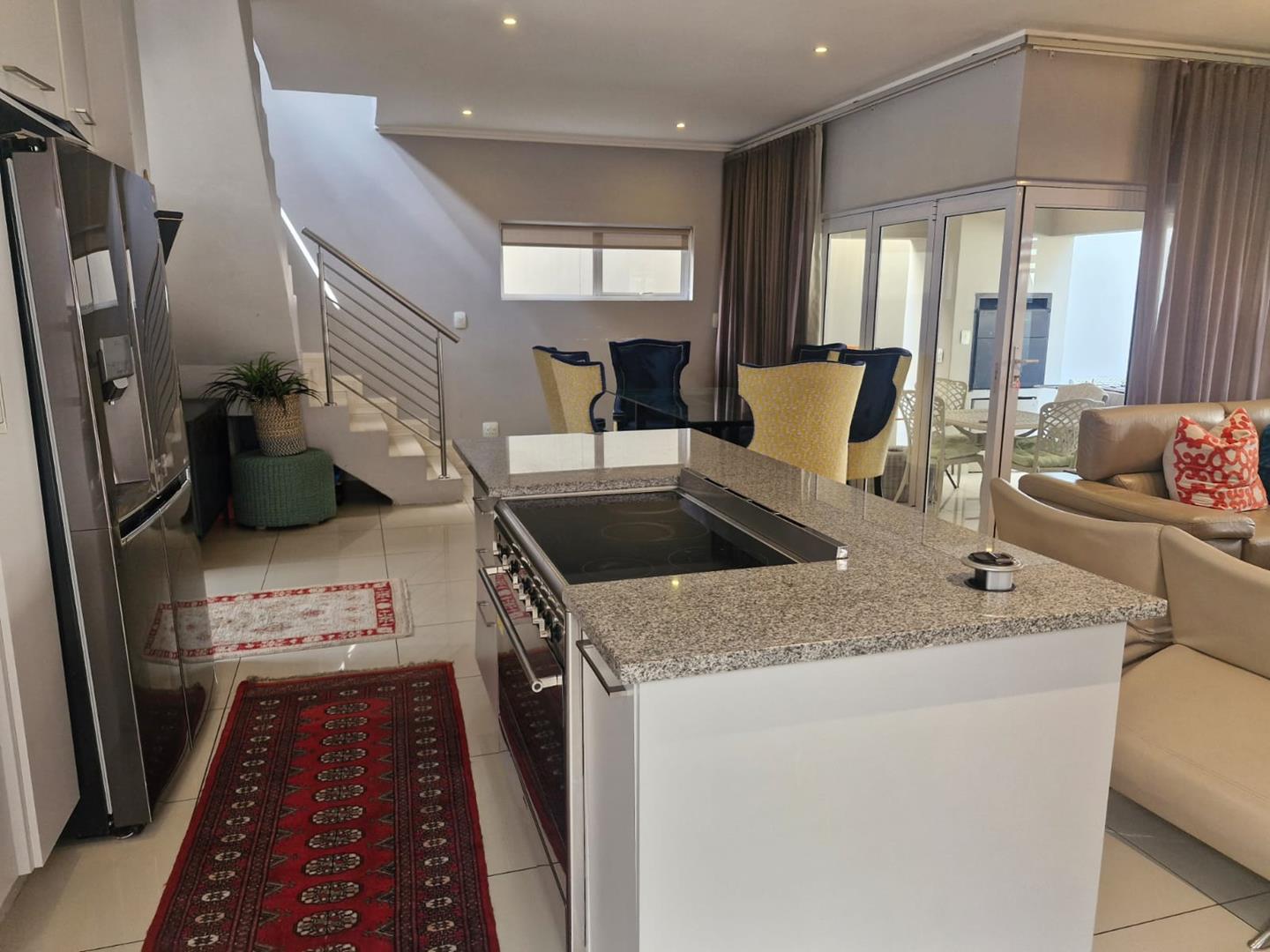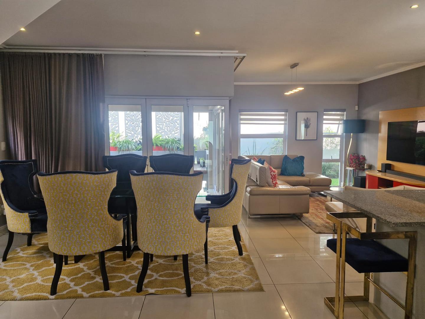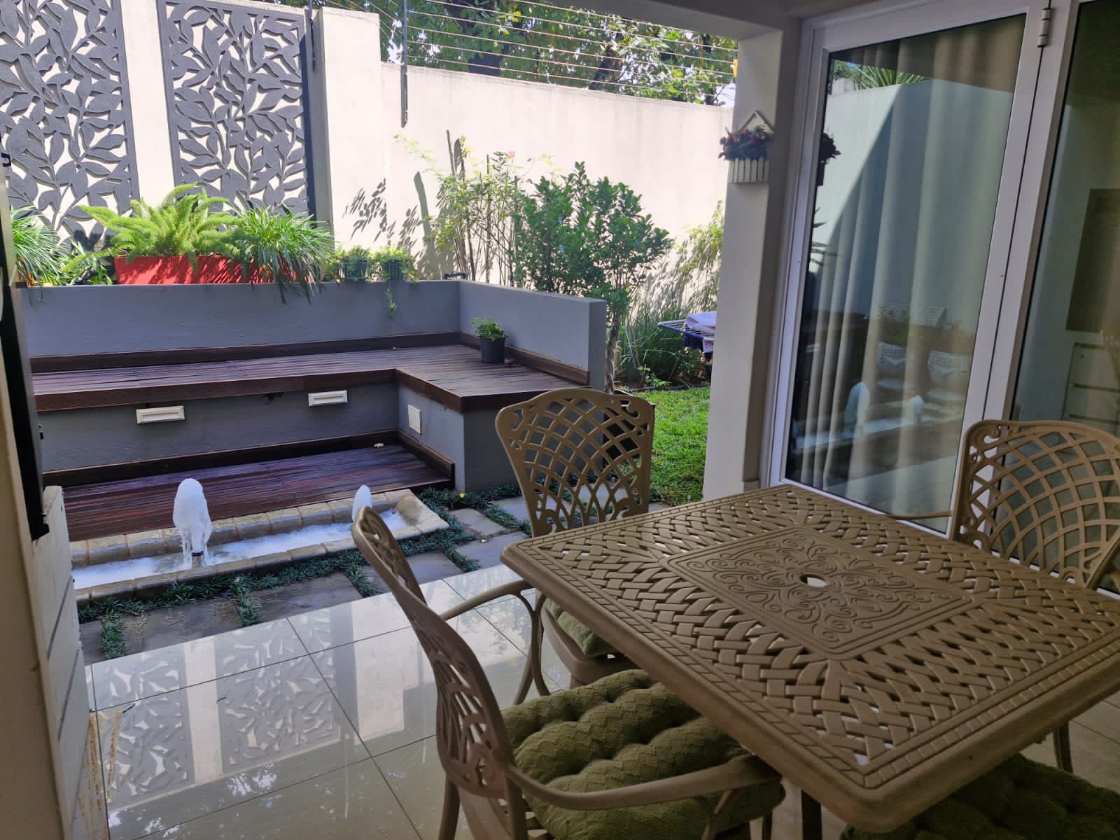 Move straight into this sleek cluster which offers 2 reception areas that open with glass stacking doors onto the undercover patio with a braai, water feature with seating around and a garden