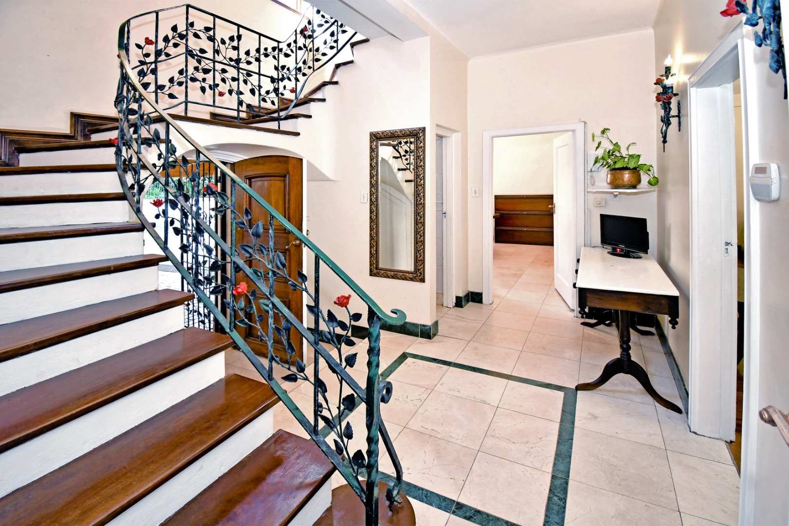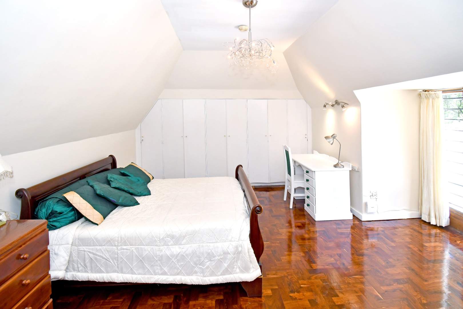 - Four bedrooms, two en-suite, all with balcony access and tranquil garden views