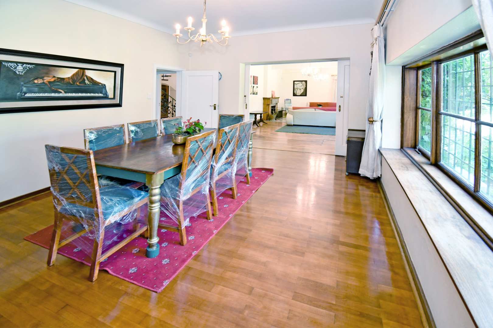 - Formal dining room opening onto the garden