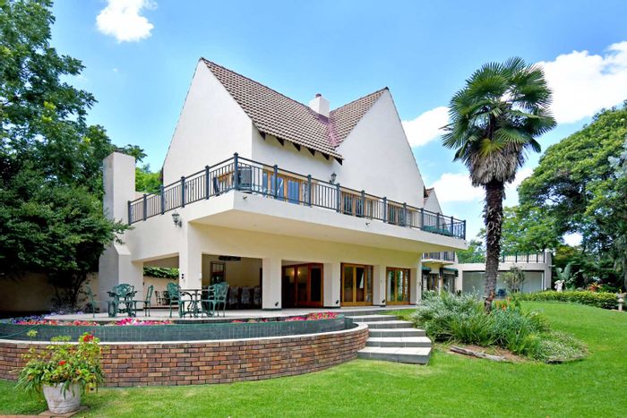 Secluded family retreat in boomed-off Bryanston, offering expansive grounds, manicured English gardens and a floodlit tennis court — includes five bedrooms, salt‑water pool and double garage.