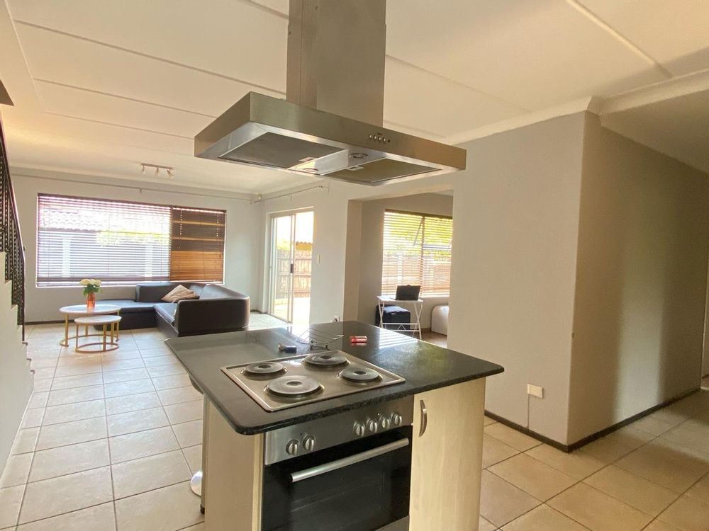 The open-plan lounge and dining area are light and airy, leading out to a private pool—perfect for summer braais or just unwinding on the weekends. There’s also a double garage and extra driveway space for guests.