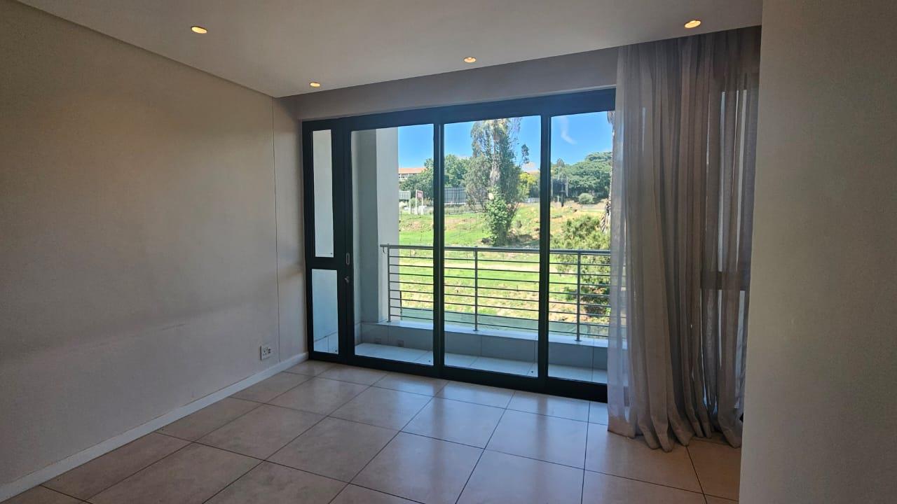Both bedrooms have tall windows that draw in natural light and frame views of the greenbelt and spruit. The main bedroom comfortably accommodates a queen-size bed, and both rooms come with built-in cupboards.