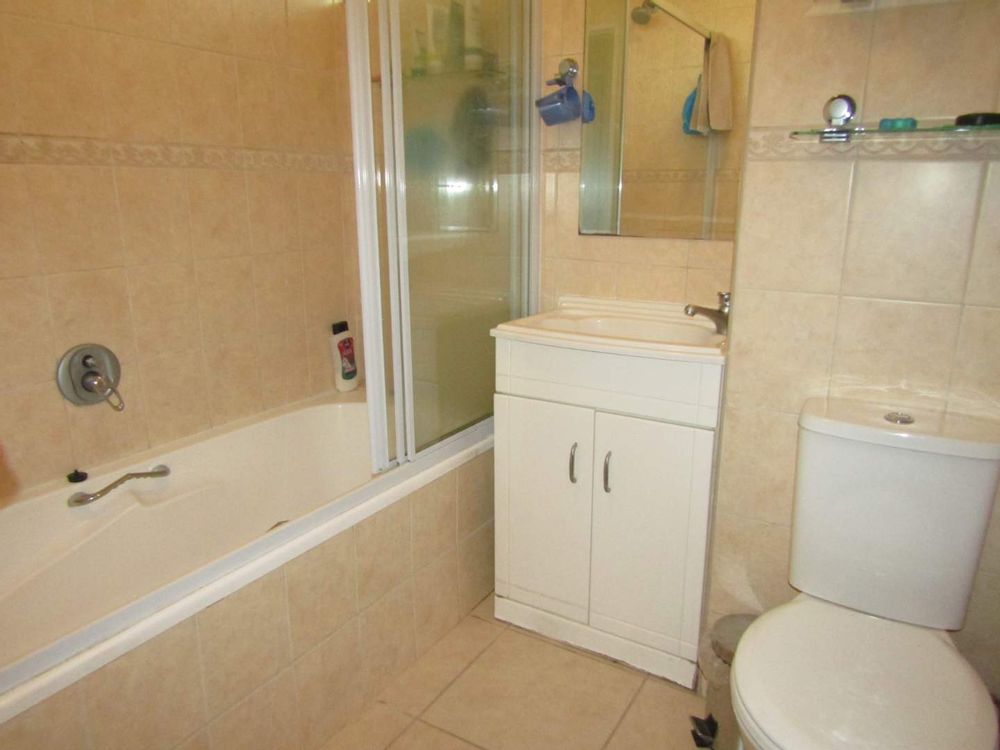 Bathroom with shower in bath.