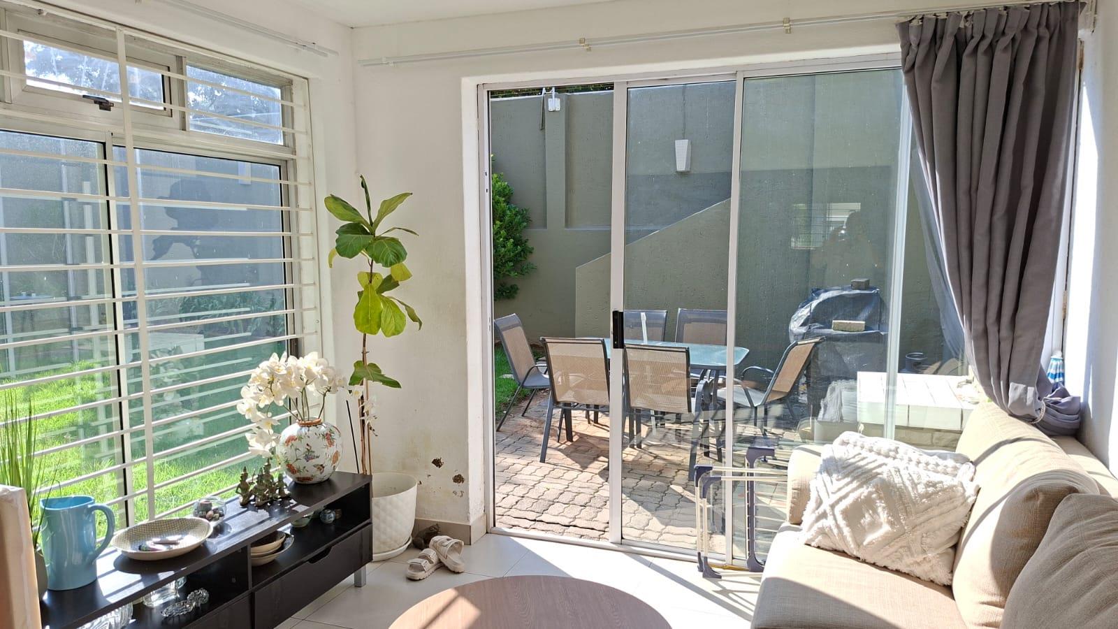 Open-plan lounge dining with enclosed patio.
