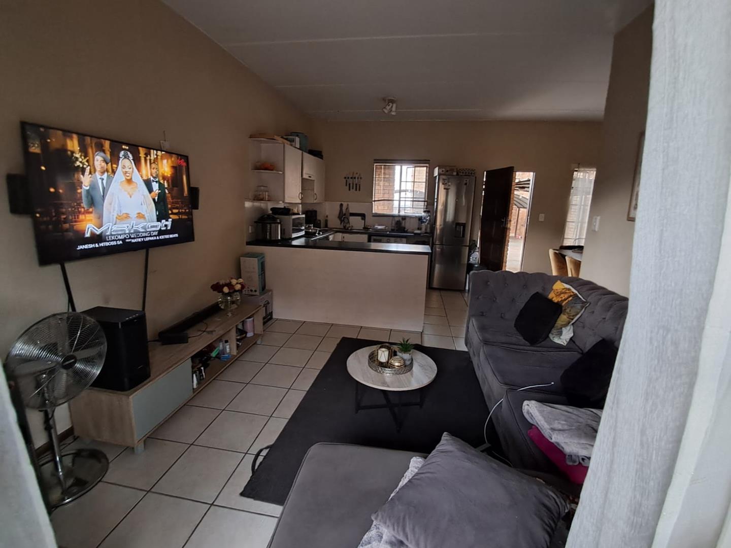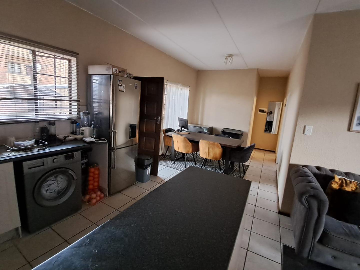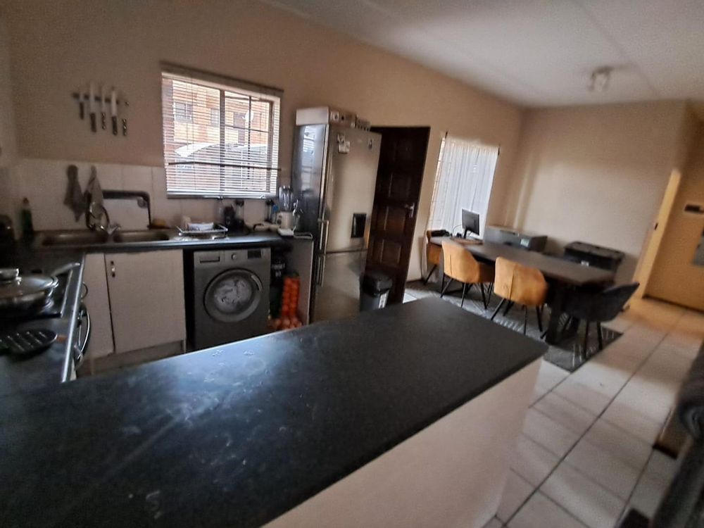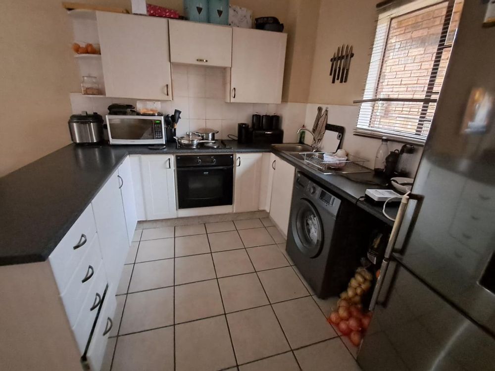 Spacious open plan kitchen with ample cupboards and space for 2 appliances