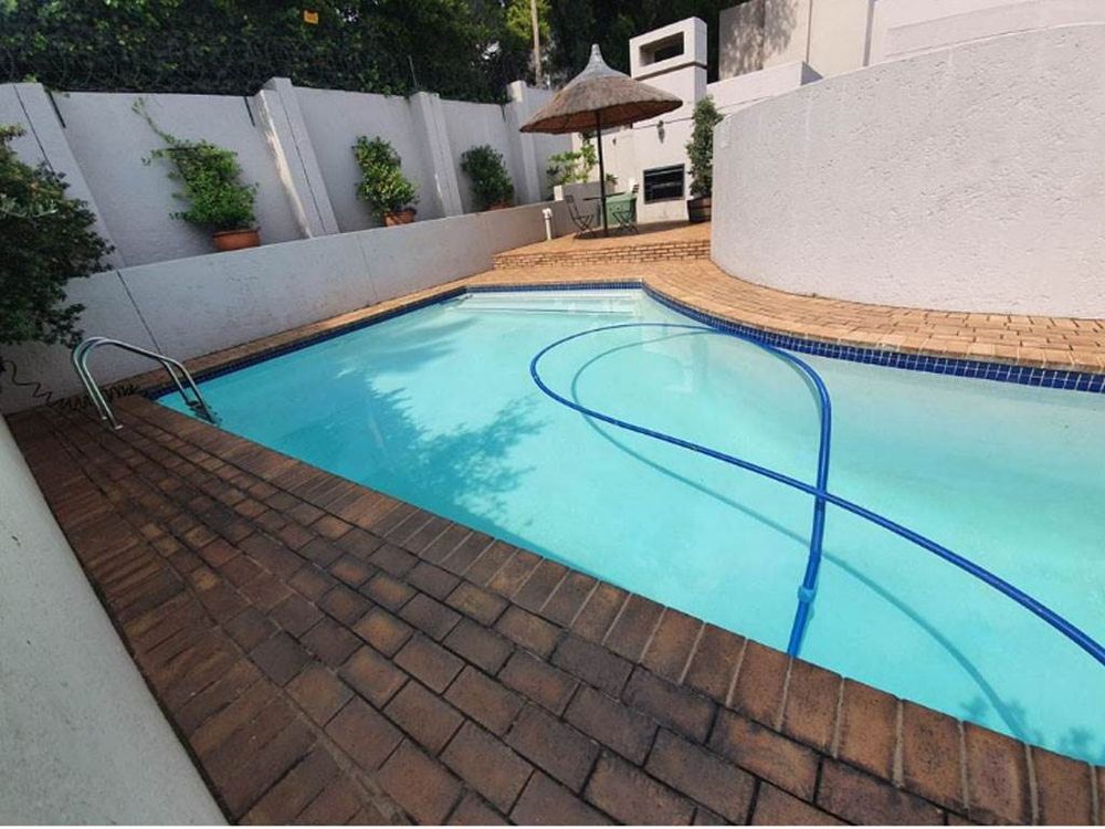 Relax in secure Morningside living near Sandton CBD, with a private garden, open-plan duplex design, furnished interiors, two bedrooms and 2.5 bathrooms, plus communal pool.