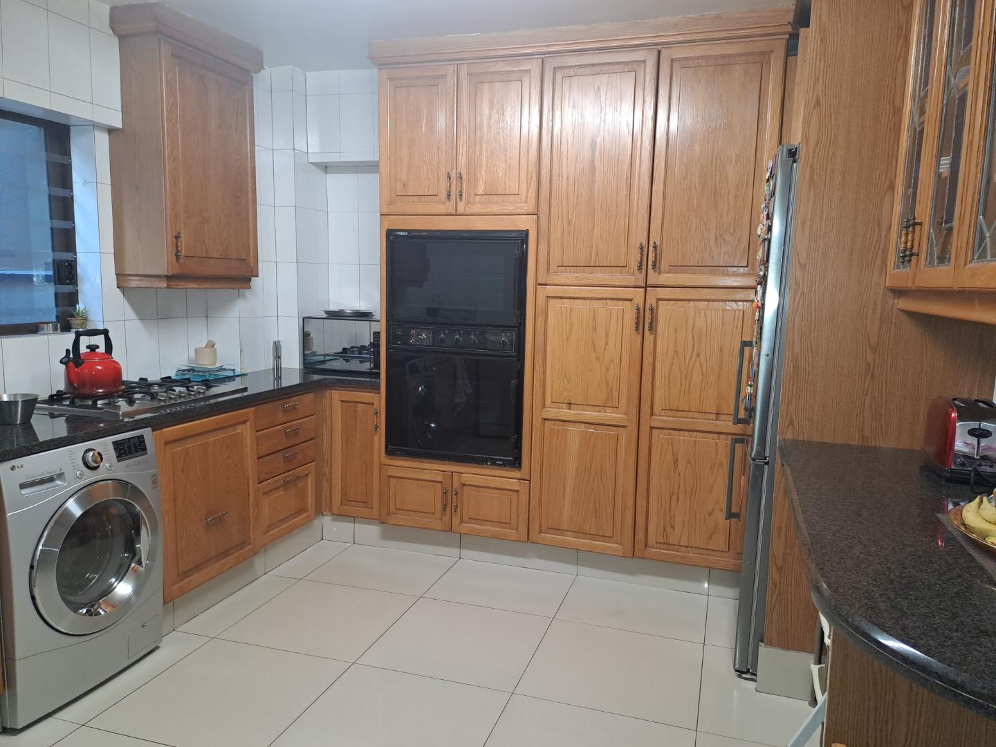 The living spaces are designed for both relaxation and entertaining, offering an open-concept lounge and dining area fitted with elegant American shutters, complemented by a separate, well-appointed kitchen featuring a gas oven and abundant wooden cabinetry.