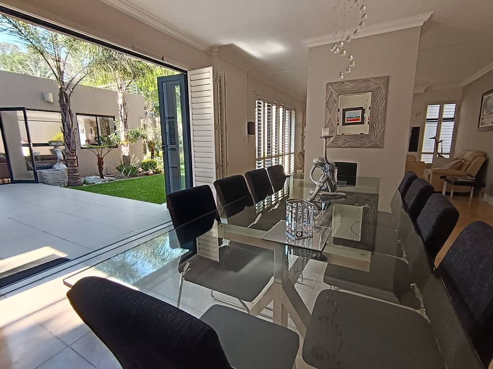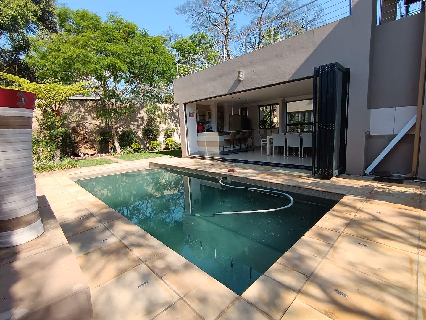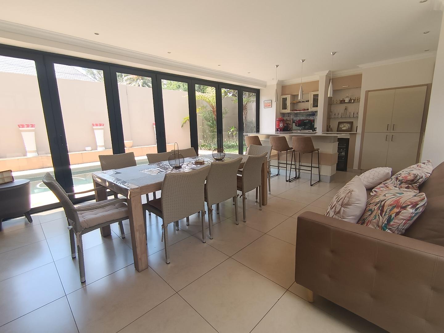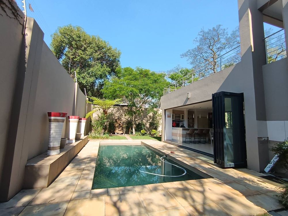 Open-Concept Living Areas: Kitchen, living room, media room, dining area, and bar—all flowing effortlessly onto a lush courtyard with a swimming pool
