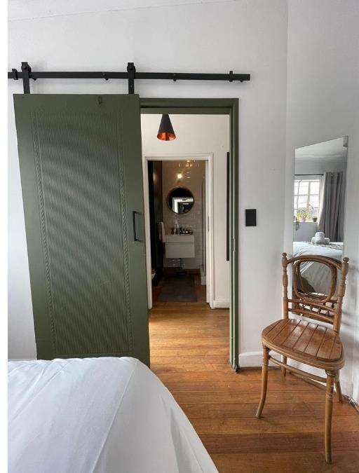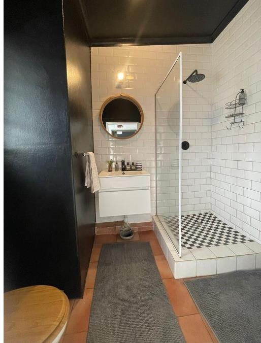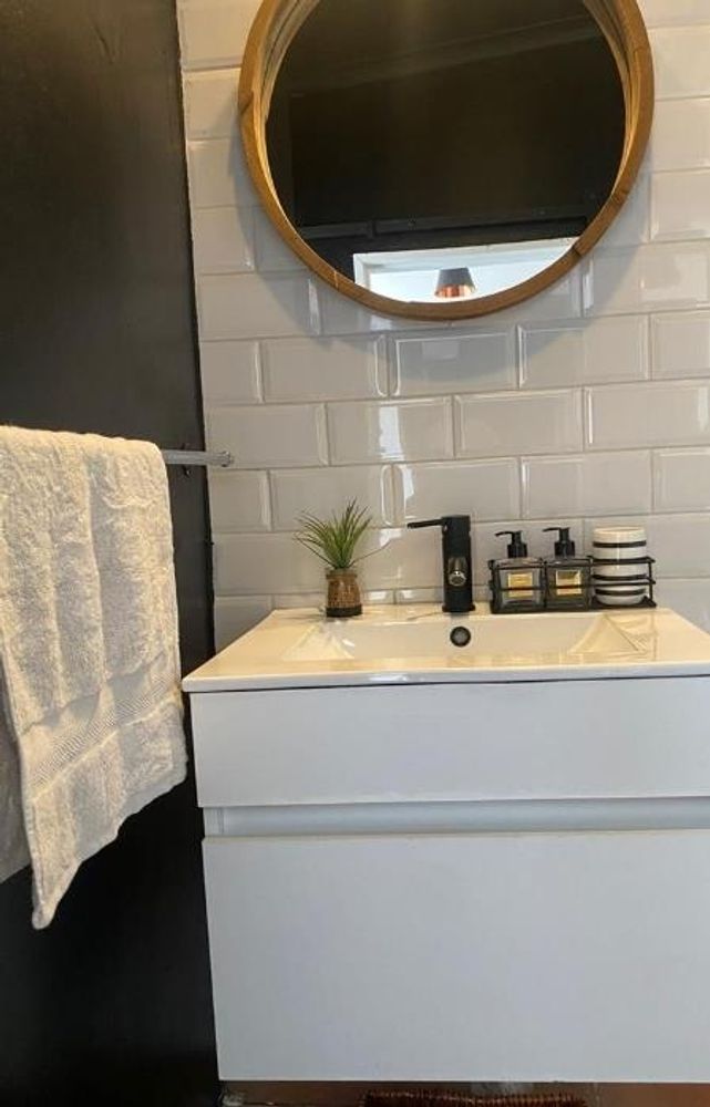 The bedroom is very spacious and the bathroom has been renovated with subway tiles