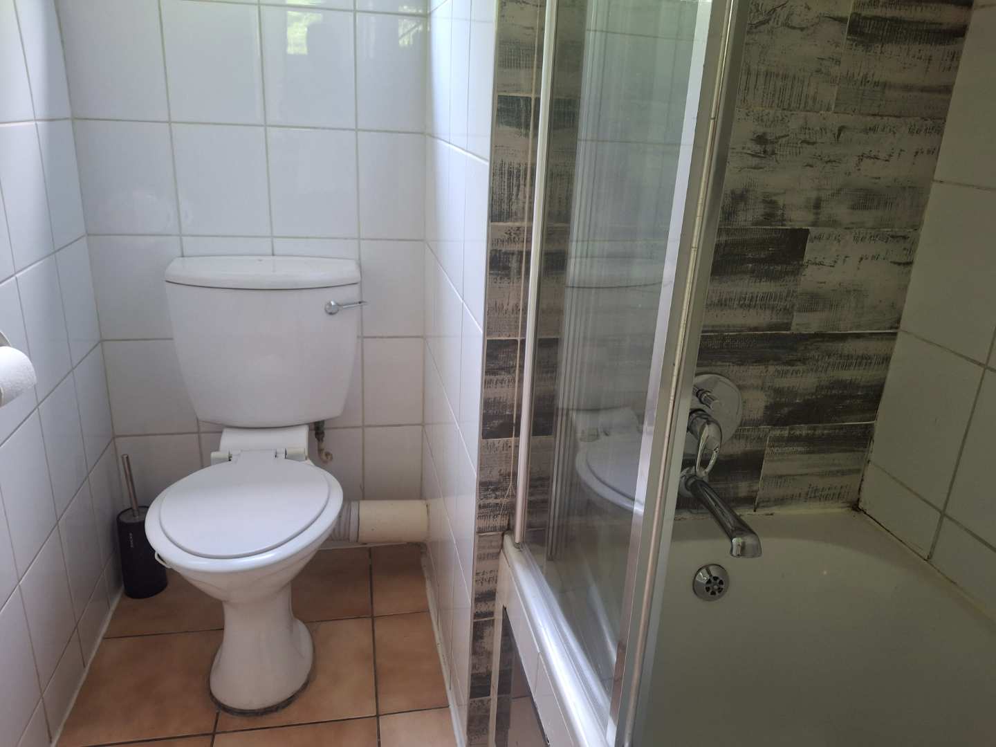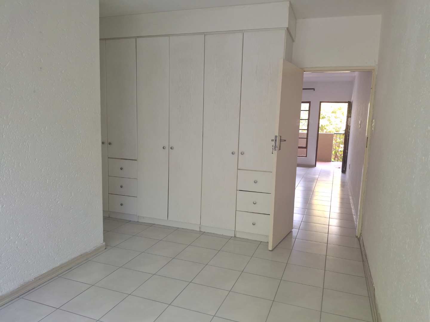 The bedroom is en suite, featuring a comfortable layout with ample cupboard space and a neat, modern bathroom.