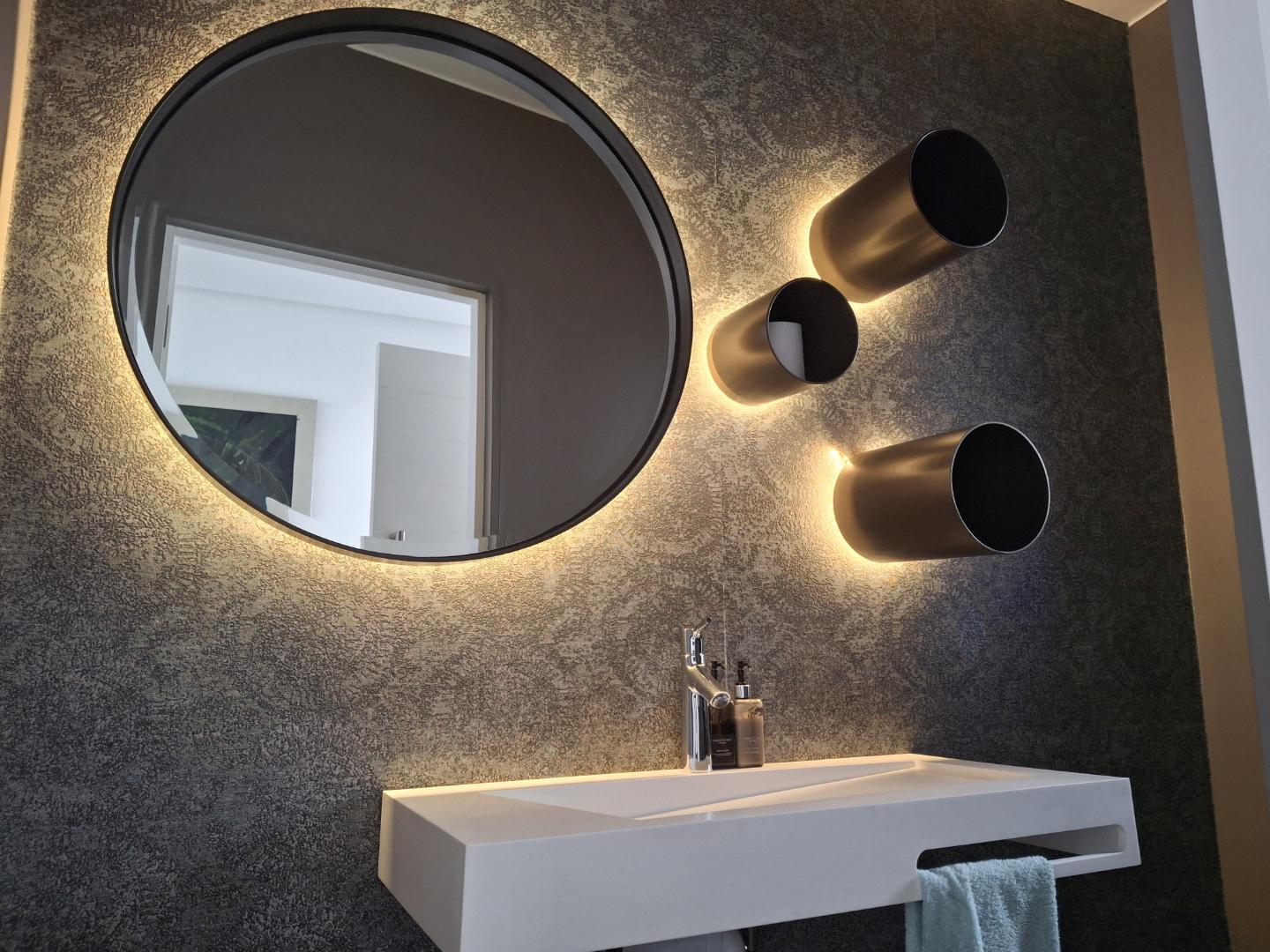 Luxurious main bedroom with air-conditioning, abundant cupboard space, and a lavish en-suite bathroom featuring a large shower, soaking bath, and double vanity