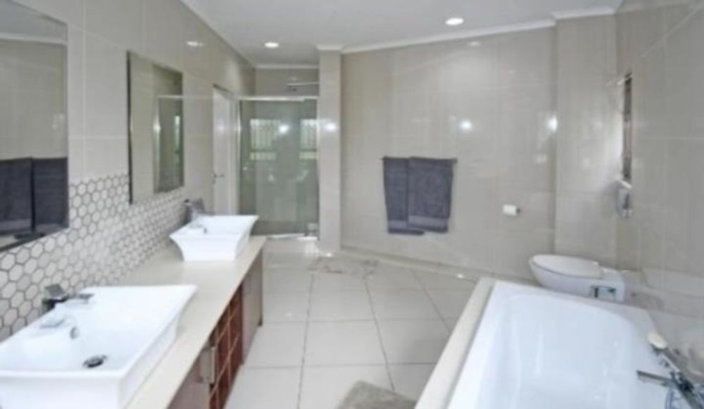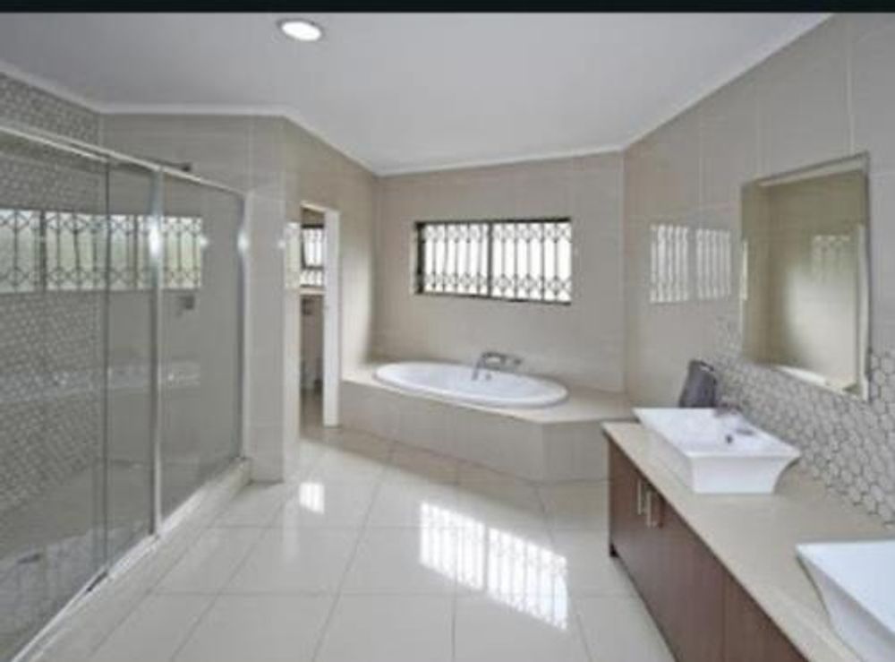 The TV room and lounge open onto the huge patio with a serving area and garden and swimming pool with glass fenced and is solar heated