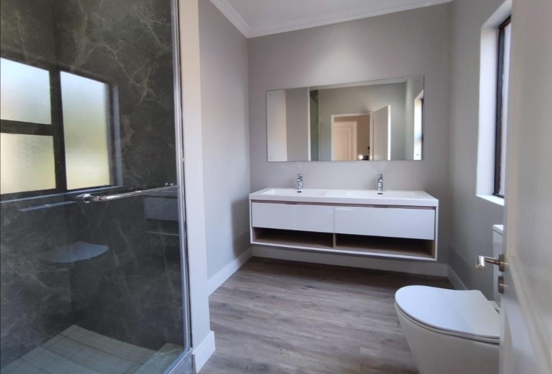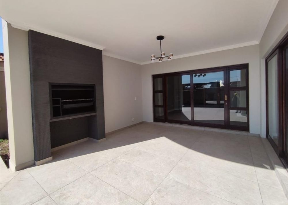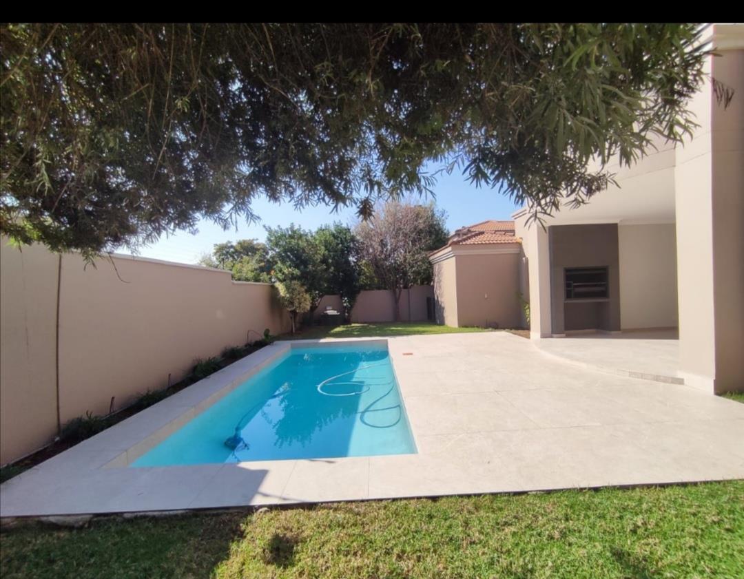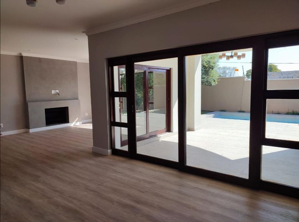 Reception areas are bright and light. The lounge has a fire place. They open onto the large undercover patio with a built in braai. The garden is a good size with a swimming pool