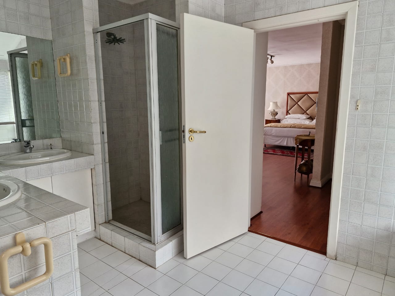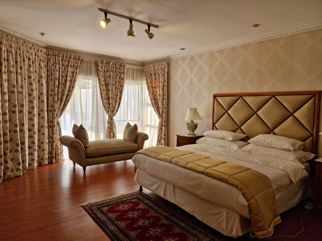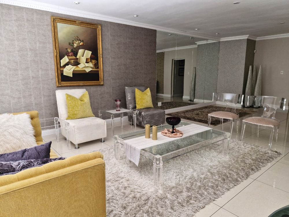 This home offers 5 living areas, including: dining room, 3 lounges and an indoor/outdoor room which opens onto the patio, pool and garden. The living areas have porcelain tiles, bespoke wallpaper and chandeliers