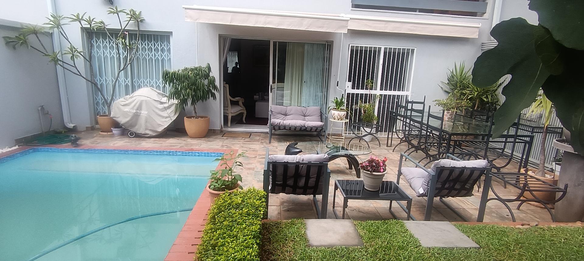 Practical features include a single garage and additional parking directly outside the unit, making daily living easy and convenient. The small complex has a warm, neighbourly atmosphere and offers the kind of peaceful environment where residents walk their dogs and children ride bikes along the pavements. Security guards are stationed at both ends of the street, adding further peace of mind.