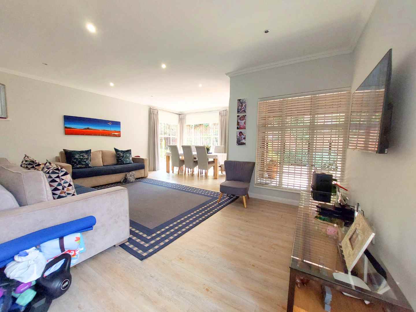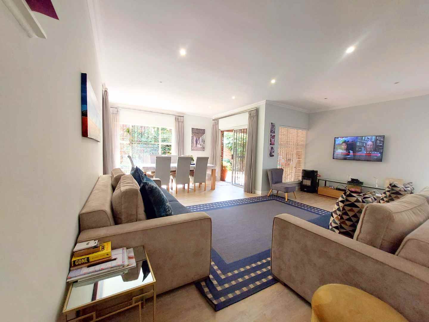 An elegant archway opens into a bright, open-plan living and dining area that spills out onto a covered patio and a truly charming, full-length garden. Framed by fig and lemon trees, it’s a space made for relaxed braais, kids at play, and easy entertaining.