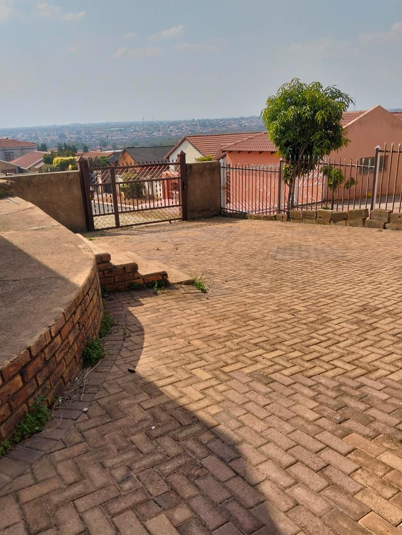 HOME WITH A VIEW!!! Perfectly located on a hill, this home gives an interrupted view of Mabopane. This family home just awaits your personal touch. It offers 3bedrooms, 2bathrooms(main en-suite and guest), huge living area, tiled, fitted cupboards, sitting on a 392m2 paved and walled yard.
