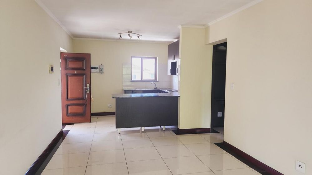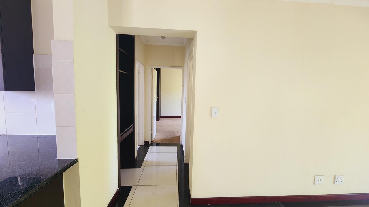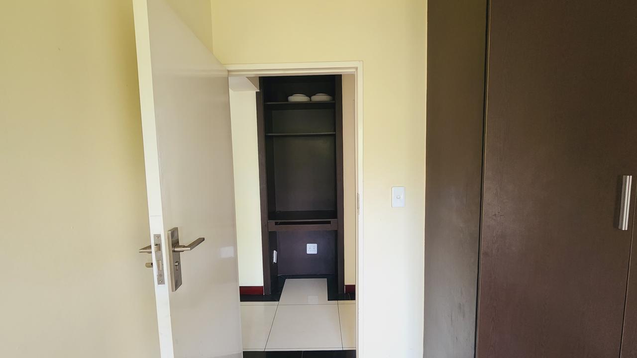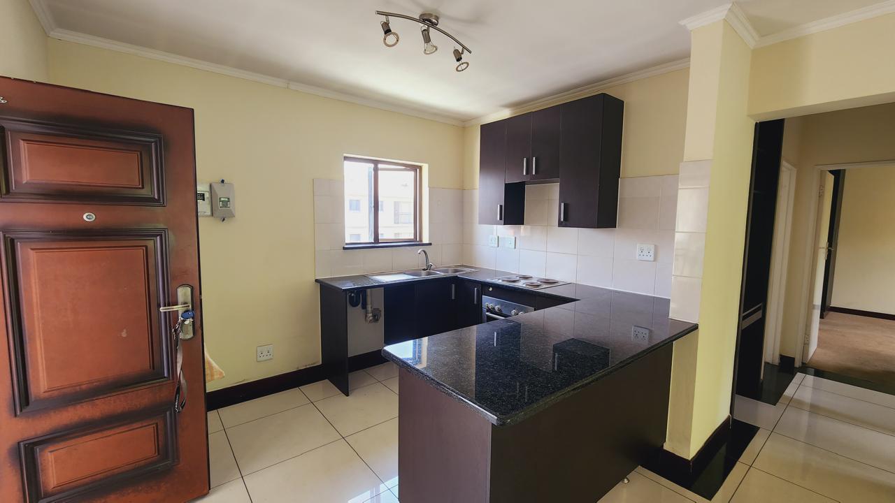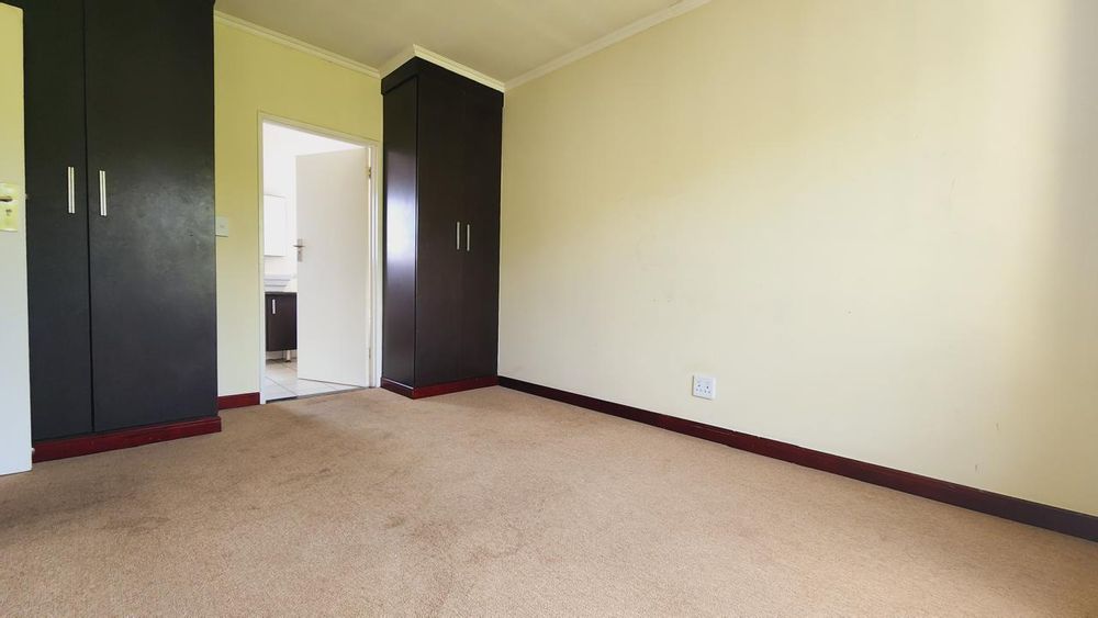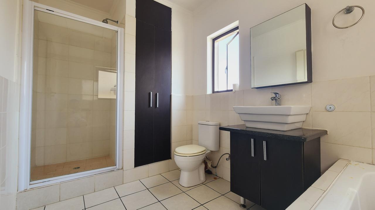 Both bedrooms are well-sized with ample built-in cupboards, while the full bathroom is neatly finished with a bath, shower, basin, and loo.
