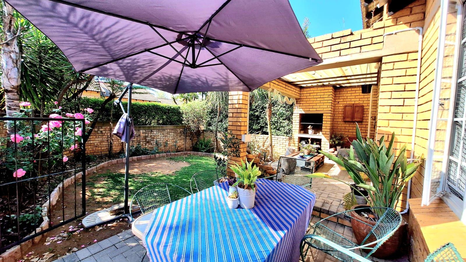 This beautiful 2-bedroom, 2-bathroom semi-detached townhouse offers a private garden and a versatile downstairs living space that can be used as a lounge or dining area. The large loft can serve as an additional lounge or be converted into a third bedroom. The master bedroom boasts an ensuite bathroom and walk-in closet, providing a private retreat. Enjoy outdoor entertainment on the covered patio with a built-in braai, while the property offers parking for up to 6 cars (single garage plus driveway).