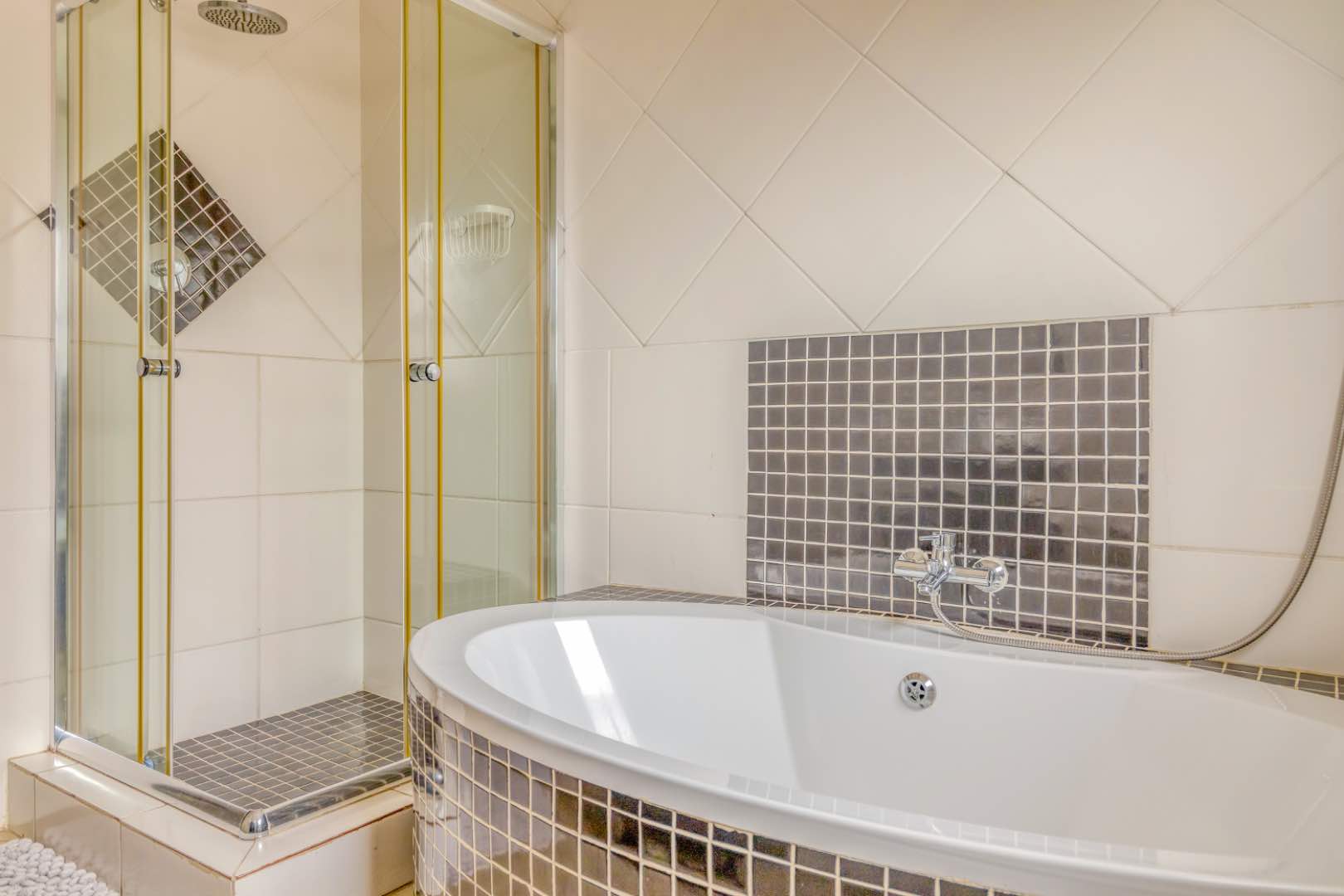 The bedrooms offer a sense of calm and relaxation, with the main bedroom featuring an ensuite that includes both a bathtub and a shower. The second bathroom is equally well-appointed, catering to both family and guests.